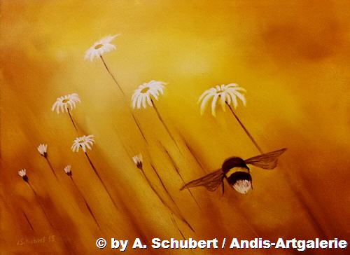 Margeriten und Hummel 2015 50 x 70 cm Öl |